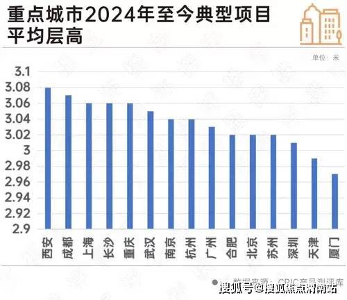 聚焦到关注度最高的层高来看,据CRIC产品测评库不完全统计,15个重点城市(北京、上海、广州、深圳、杭州、合肥、厦门、南京、武汉、苏州、天津、西安、成都、长沙、重庆)2024年至今6268个典型项目平均层高已达3.04米。