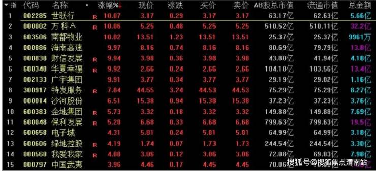 截至当日收盘,A股世联行、万科A、南都物业等强势涨停,房地产板块整体涨幅超2%。