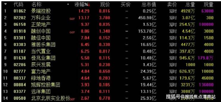 H股方面,景瑞控股、万科企业涨幅超10%,正荣地产、融创中国、融信中国、雅居乐集团涨幅超5%,内房股板块整体涨幅为2.72%。