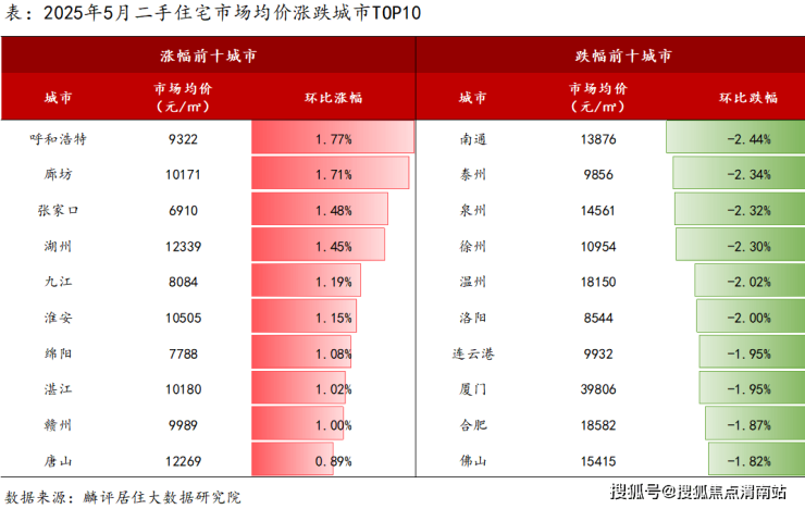 二线城市中,受到长三角区域南通、徐州、温州等城市房价下跌影响,5月份环比跌幅较4月份有明显扩大趋势。尽管5月央行降LPR10个基点,利好购房者。但当前就业环境,收入预期下降,购房者入市信心不足,房价缺乏上涨动力因素,尤其是产业配套,人口流入弱的二线城市房价跌幅明显扩大。