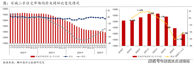 麟评居住大数据研究院近日发布的报告显示,2025年5月100个重点城市二手住宅市场均价为13956元/平方米,环比下跌0.53%,同比下跌3.53%,同比跌幅较上月收窄0.35个百分点,同比跌幅连续9个月收窄。整体来看,今年前5个月100个重点城市房价为13956元/㎡,较2024年下跌4.18%。