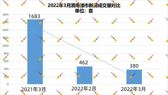2022年3月新房成交套数380套,环比2022年2月新房成交套数462套,下降82套;同比2021年3月新房成交套数1683套,下跌1303套。