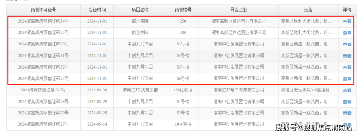 五、渭南楼市上周(2024年11月4日-11月10日)预售证公示信息