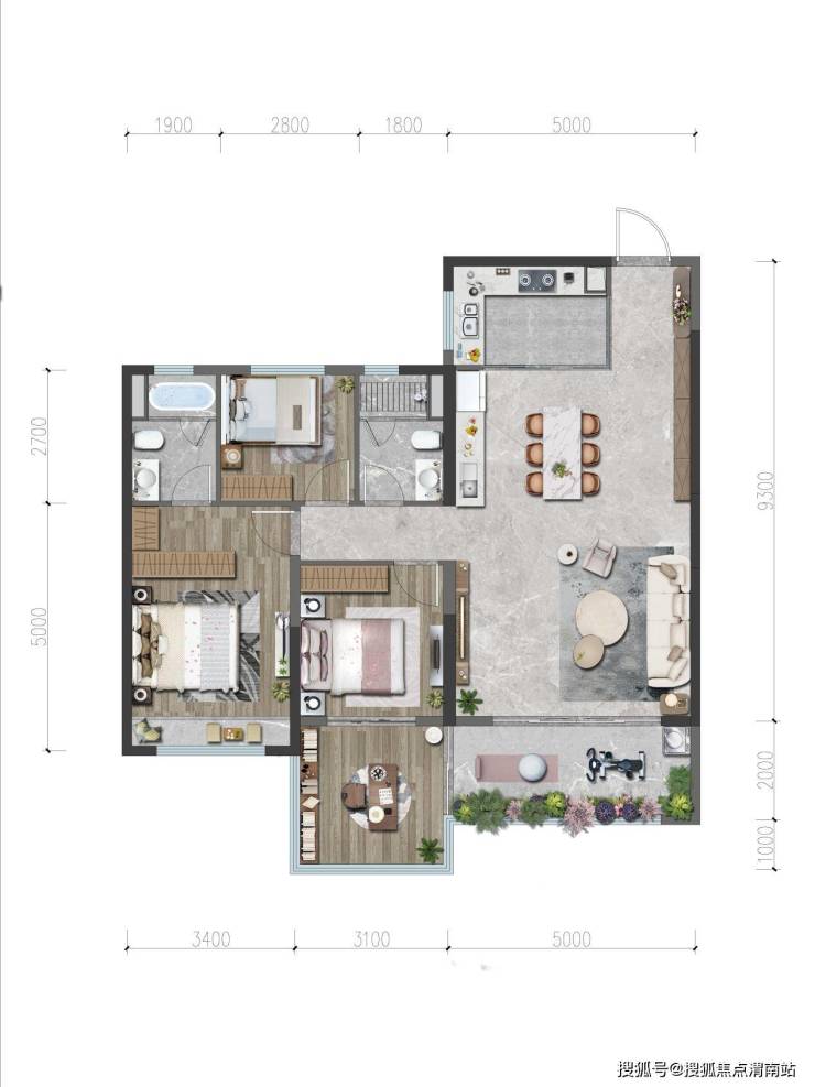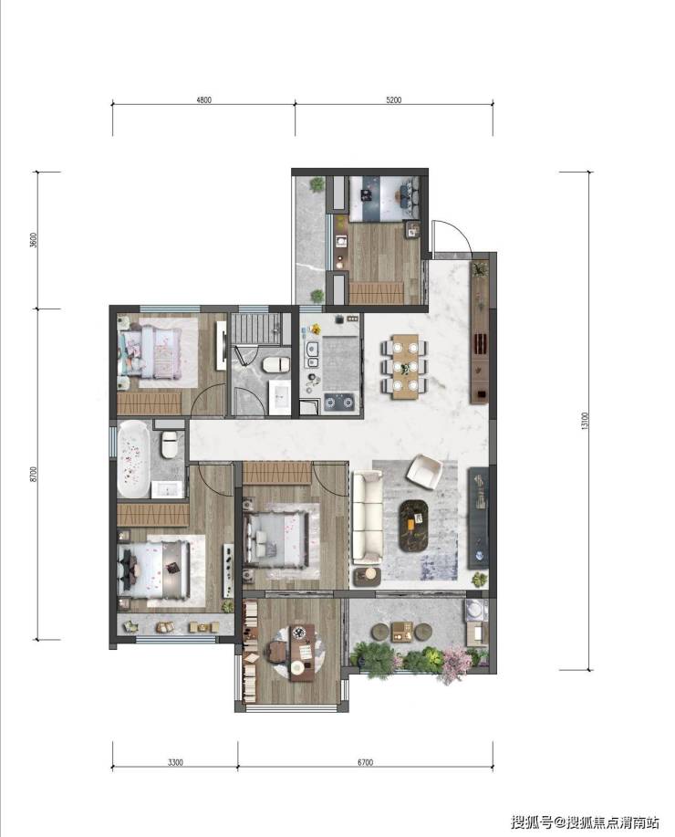 建面约126.14㎡户型,赠送19.3㎡,户型面积约145㎡。更宽敞、大气。同样3面朝南,但客厅空间更大,同时容纳几代人完全不是问题。阔绰的4房+南向双阳台设计,让家里聚会、玩耍、收纳等空间变得更加多元。