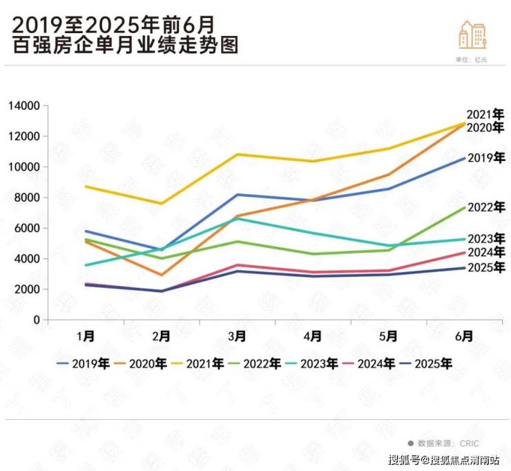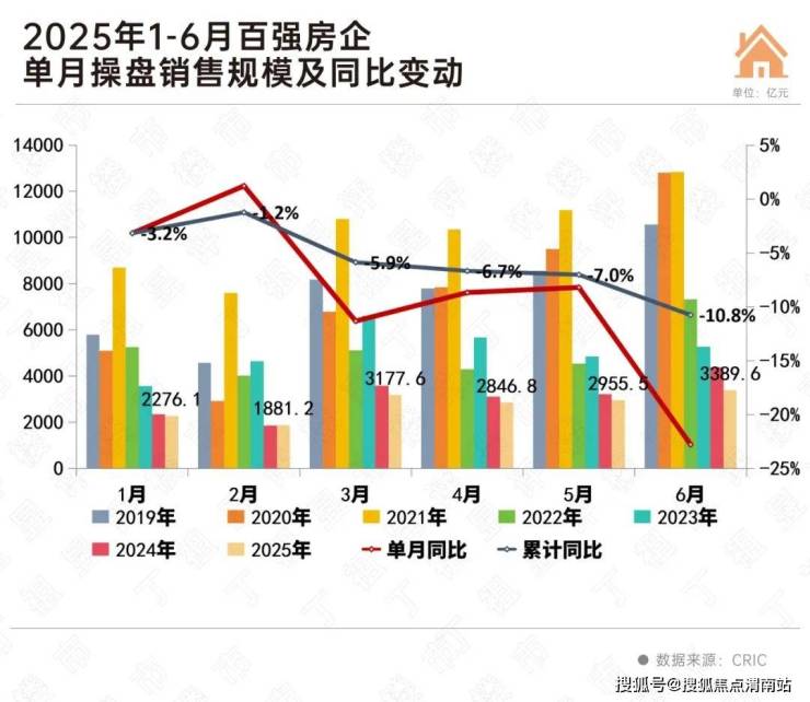 从更长周期来看,对比近几年6月业绩情况,2025年仍是房企销售规模最低的年份。