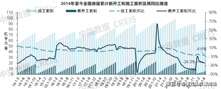 值得注意的是,上半年房屋竣工面积持续增长,但施工面积下降,且新开工面积降幅较大拖累了整体指标。