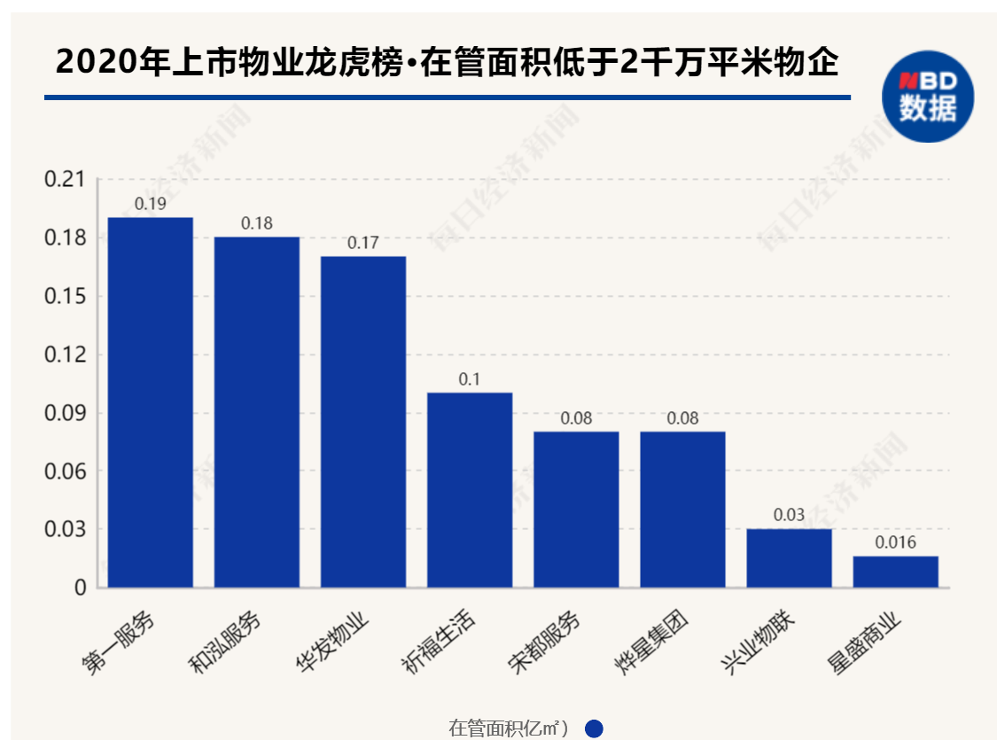 值得一提的是,兴业物联和星盛商业则分别以300万平方米和160万平方米的在管面积列属于该榜单的最后两名。具体来看,2020年末,兴业物联在管物业涵盖了46幢商用楼宇及5幢政府楼宇,在管面积由2019年约240万平方米增至2020年约310万平方米;而被誉为“纯商业运营服务排名前列股”星盛商业在管面积仅160万平方米,主要管理22个已开业零售商业物业。