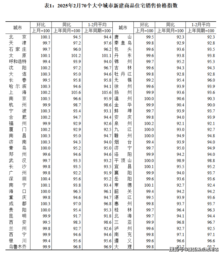 中房网讯 (苏晓/文)国家统计局近日发布的《70个大中城市商品住宅销售价格变动情况》显示,2025年2月份70个大中城市中新建商品住宅和二手住宅销售价格环比上涨城市分别有18个和3个,比上月分别减少6个和减少4个;同比上涨城市分别有2个和0个,与上月均持平。