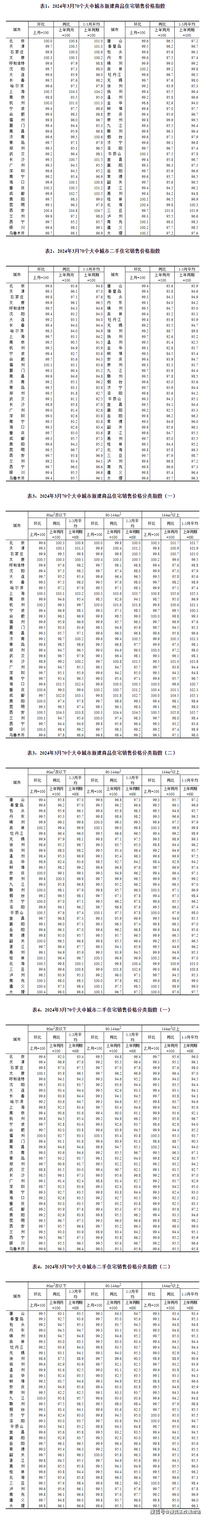 2024年3月份,70个大中城市新建商品住宅和二手住宅成交量比前期有所上升,各线城市商品住宅销售价格环比降幅略有收窄、同比降幅扩大。