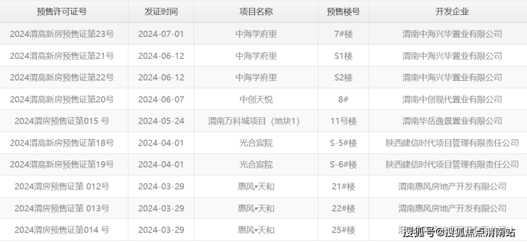 五、渭南楼市上周(2024年7月22日-7月28日)预售证公示信息