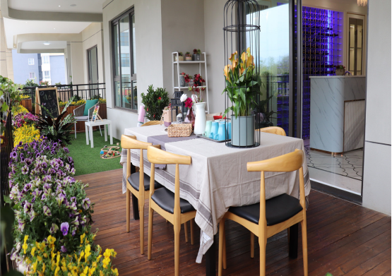 其实每天穿梭在繁华城市中,对于户外乐园的接触少之又少,此时的院子便发挥了重要的作用,足不出户就可以在这个空间休憩、聊天、喝茶、聚会,加上精心布置的小型景观,就能轻松融入于自然之中。