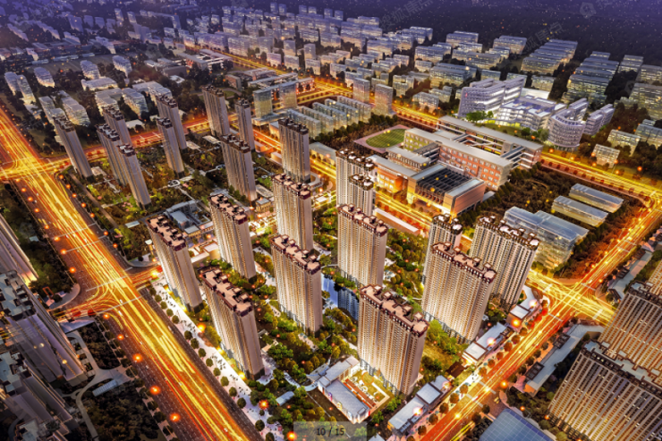 项目总占地面积约130亩,总建筑面积约33万㎡,由14栋住宅、2栋沿街商业,1栋幼儿园组成,其中住宅建筑面积252798㎡,临街商业面积2749㎡。