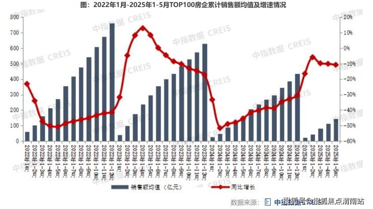 5月30日—31日,中指研究院、克而瑞、亿翰智库等机构陆续发布2025年前5月百强房企销售业绩及拿地金额榜单。中指研究院数据显示,前5月,百强房企销售总额14436.4亿元,同比下降10.8%。另据克而瑞数据,百强房企5月销售操盘金额2945.8亿元,环比增长3.5%。