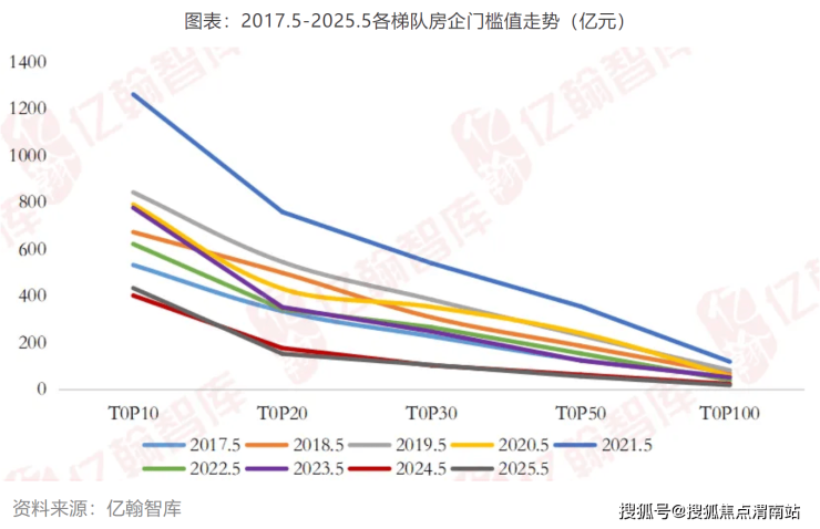 值得注意的是,从门槛值数据来看,头部梯队房企同比已现回暖。亿翰智库统计显示,前5月,TOP10房企销售门槛值为433亿元,同比增长8%;TOP30房企的销售门槛值为104亿元,同比增长2%。