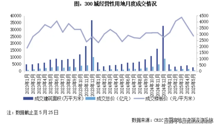 据克而瑞数据,截至5月25日,5月全国300城经营性土地招拍挂成交2826万平方米,同比下降18%,降幅较4月全月缩小了7个百分点;成交金额807亿元,同比增长12%,土地成交延续缩量提质特征。