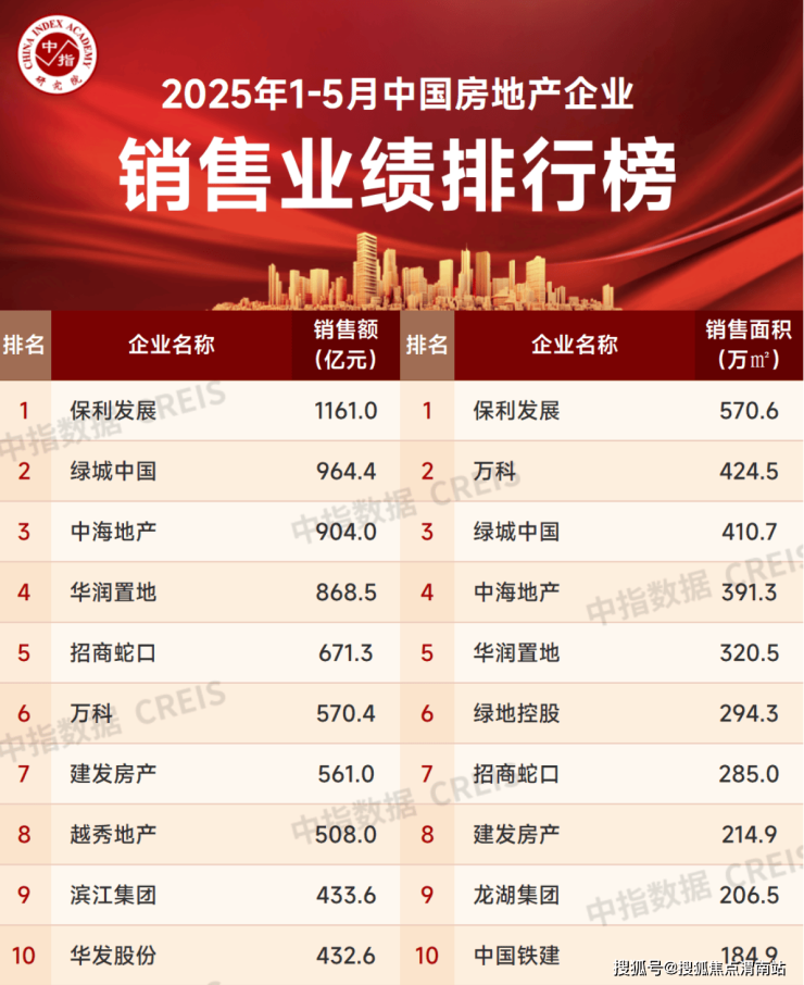 头部企业表现依然稳健。亿翰智库统计显示,前5月,TOP10房企和TOP30房企的销售门槛值分别同比增长8%和2%。保利发展前5月以1161亿元领跑百强房企,并成为今年首个销售额破千亿元的房企。