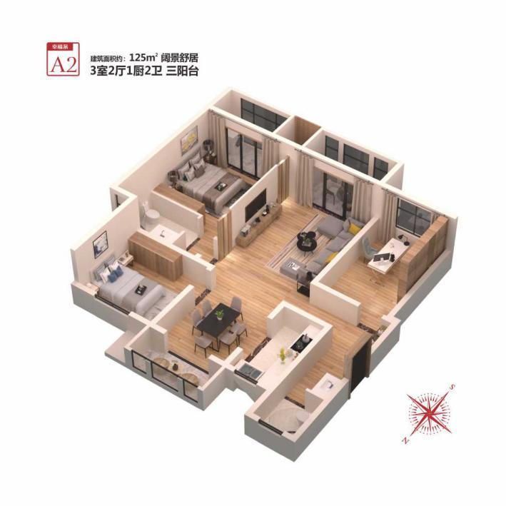 外享公园,内享花园,空间厅/卧/厨/卫明窗通风,三大阳台多向观景,生活舒适度高