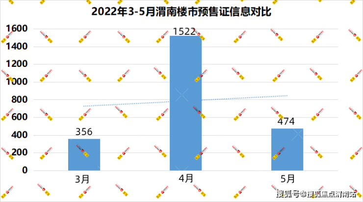 综上,2022年5月渭南楼市共计474套房源入市,环比2022年4月预售证房源入市1522套,下降了1048套;环比2022年3月预售证房源入市356套,上涨了118套。