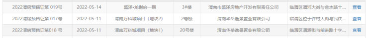 其中,渭南万科城项目(地块1)104套房源;渭南万科城项目(地块2)190套房源;盛泽▪龙樾府一期180套房源;