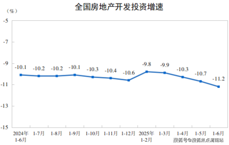具体来看,房地产开发投资增速方面,累计同比跌幅较上期扩大 0.5 个百分点。数据显示,1-6月份,全国房地产开发投资46658亿元,同比下降11.2%;其中,住宅投资35770亿元,下降10.4%。