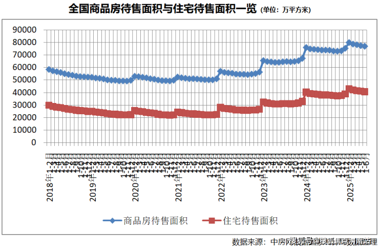 此外,从商品房库存看,连续四个月减少。截至6月末,商品房待售面积76948万平方米,比5月末减少479万平方米。其中,住宅待售面积40821万平方米,减少443万平方米。