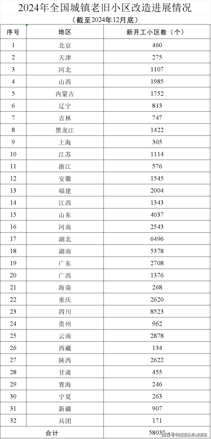 2月21日,住房和城乡建设部发布2024年1—12月全国新开工改造城镇老旧小区情况。