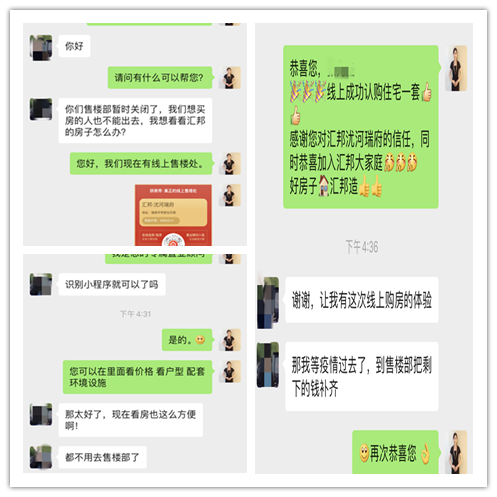 正好,这几天看到汇邦的置业顾问在朋友圈发的汇邦·沋河瑞府开通了线上售楼部,他就抱着试试看的心态,扫描小程序进入线上售楼部看看,没想到里面可以看到价格、户型、施工进度等等,这些实实在在的信息量,还有置业顾问在线服务,就打电话过去问了问,置业顾问热情、专业的服务,让他放下顾虑,安心的在线上买下了心仪已久的房子,他说等到这次疫情过去了,再去营销中心完成剩下的购房手续。
