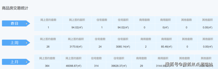 环比上周,总成交下跌49套,其中签约面积下跌7043.73㎡;住宅下跌51套,住宅面积下跌7129.19㎡;商用套上涨2套,商用面积上涨85.46㎡;其他套数持平为0。