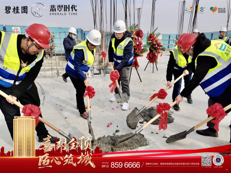 2020年12月19日上午11:00,在碧桂园陕北区域渭南大项目总丁合英总等项目相关领导、总包及监理单位领导、合作商代表与现场施工人员的共同见证下,碧桂园翡翠时代项目举行了隆重的全面封顶仪式,荣耀全城。