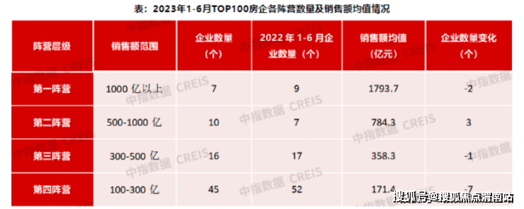 中指研究院数据显示,2023年上半年,TOP10房企销售额平均较上年增长6.0%,TOP11-30房企销售额平均较上年增长1.0%,TOP31-50房企销售平均较上年下降6.4%,TOP51-100房企销售额平均同比下降9.6%。