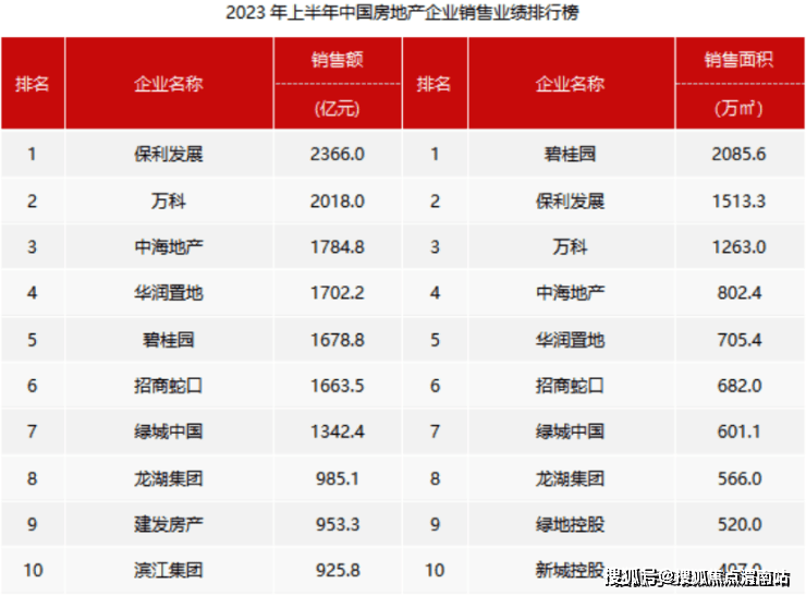 近日,中指研究院、克而瑞等机构公布了2023年上半年百强房企销售情况。克而瑞报告显示,6月,TOP100房企实现销售操盘金额5267.4亿元,环比增长8.5%,同比降低28.1%。在上半年房企销售业绩(全口径)排行榜上,保利发展、万科、中海位居前三位。