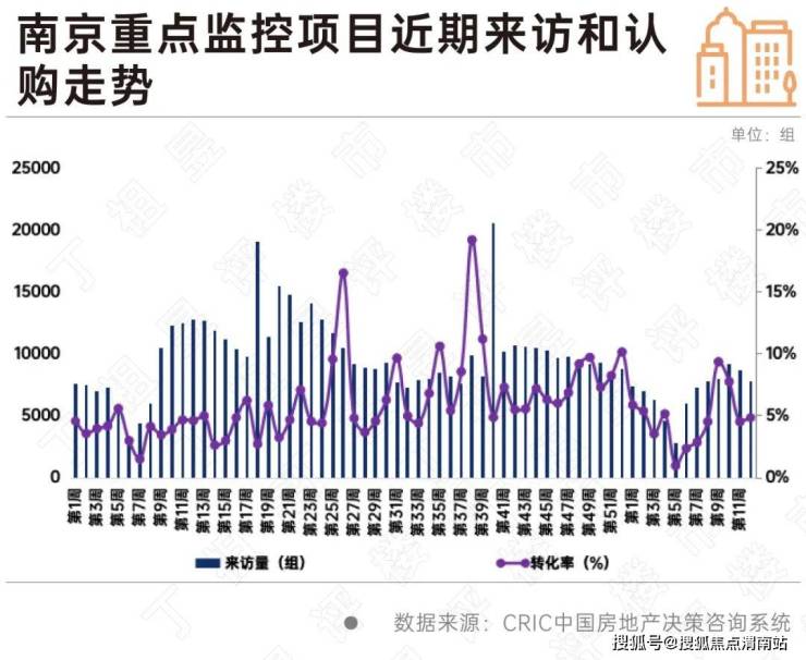 南京同样如此,据CRIC监测数据,3月后两周周均来访量稳步下行,第12周来访量已不足8000组,较3月高点周下降15%,认购较来访跌幅更为显著,近乎腰斩,因而客户转化率持续走低,3月末已不足5%,整体水平仍不及去年四季度均值。