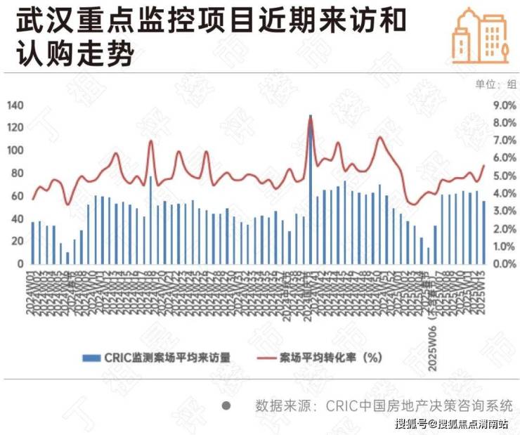 这一点从武汉从前端指标项目来访、认购来看同样可以印证,CRIC监测重点项目显示,武汉节后来访、认购节节攀升,特别是进入3月以来,单盘周均来访量基本持稳60组,认购量也均在3组以上,客户看房欲望有所回升,客户转化率攀升至5.6%。