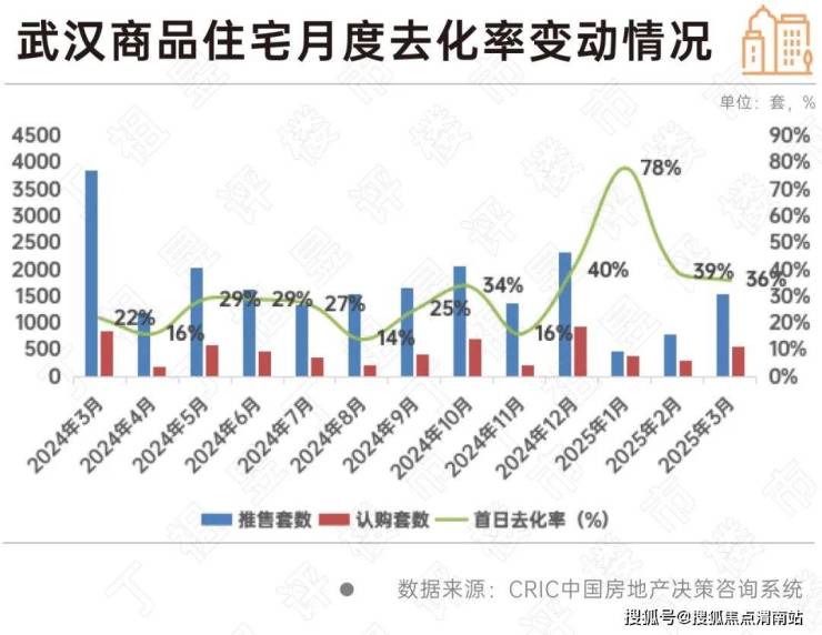 以武汉为例,CRIC监测数据显示,2024年武汉去化率基本都在三成以内低位持稳,进入年底及2025年之后,整体去化率明显上升,其中1月还一度飙升至78%,2-3月虽与1月相比略有回调但和2024年相比仍在相对高位。