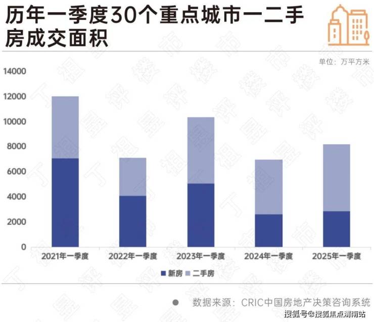 CRIC数据显示,2025年一季度一二手房成交面积达8204万平方米,较2024年同期7000万平方米增长17%,仍低于2023年一季度10370万平方米。