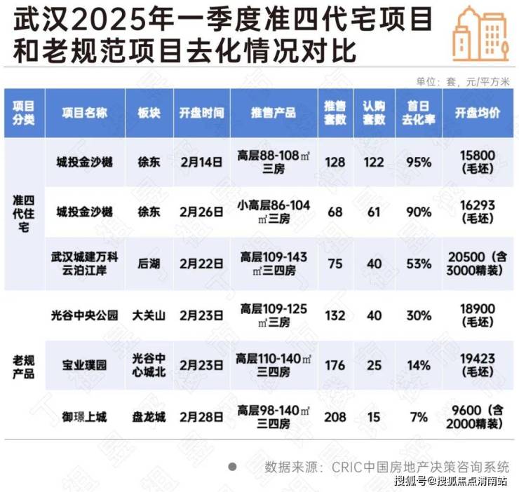其中,四代宅等新规产品已在多个核心二线城市逐步落地,基本也成为区域销量王者。譬如武汉,准四代宅推货节奏普遍加快,且多能实现热销。从武汉2025年一季度开盘的四代宅项目和传统老规范项目对比来看,四代宅去化率明显优于传统住宅项目。