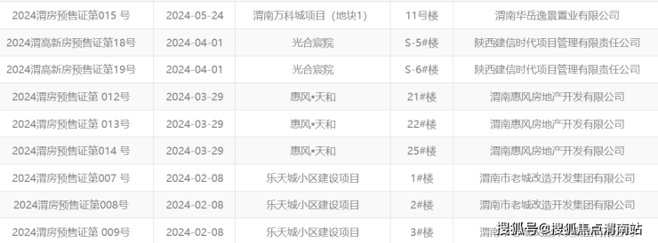 三、渭南楼市5月预售证信息
