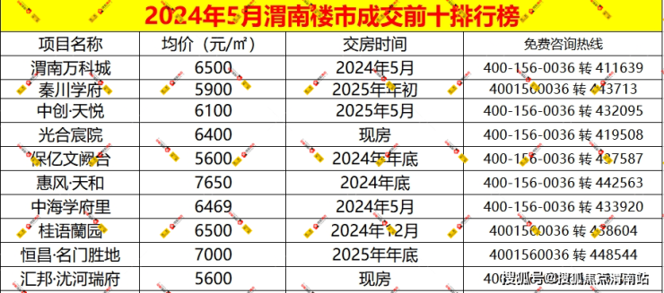 2024年5月的渭南楼市,渭南万科城、秦川学府、中创·天悦名列销量榜前3甲。其中万科城作为榜首的常客,在5月份延续了之前的火热状态,秦川学府凭借近期迅猛的势头,销量持续猛增。