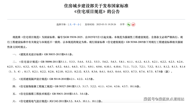 今年3月31日,住建部发布国家标准《住宅项目规范》(以下简称住宅新国标),将于5月1日起正式施行。