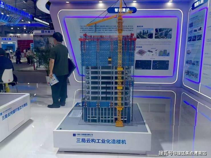 中建三局此次带来智能装备、智能工具、智慧人居、智能建造四大类别前沿创新装备与成果,现场陈展“空中造楼机”、循环施工电梯等,显示出企业深化装备智能化升级与新型智能设备研发。