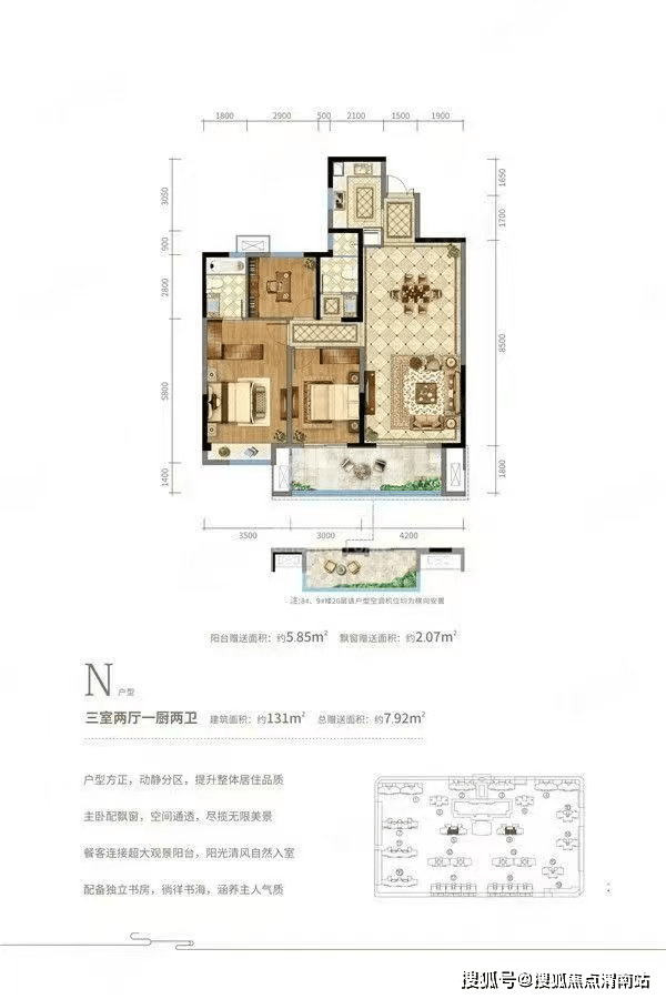 3、上上国风·九号院 毛坯 三室两厅两卫 144㎡ 90万 不满二可按揭