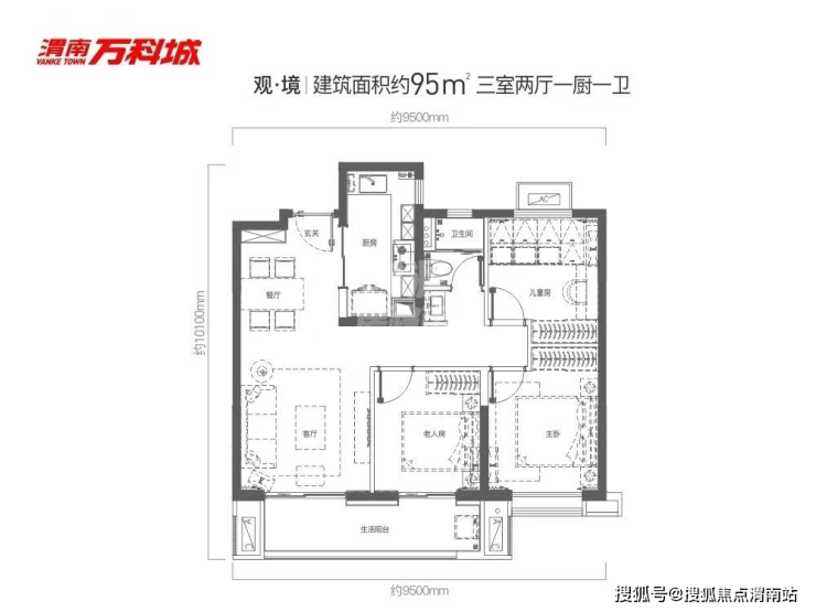 2、万科城澜园 精装 三室两厅两卫 95.24㎡ 71万 不满二可按揭