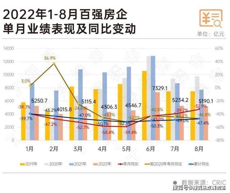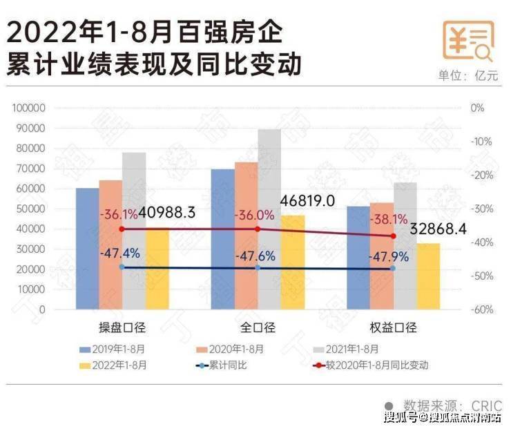 从累计业绩来看,百强房企1-8月销售操盘金额同比降幅仍保持在47.4%的较高水平。