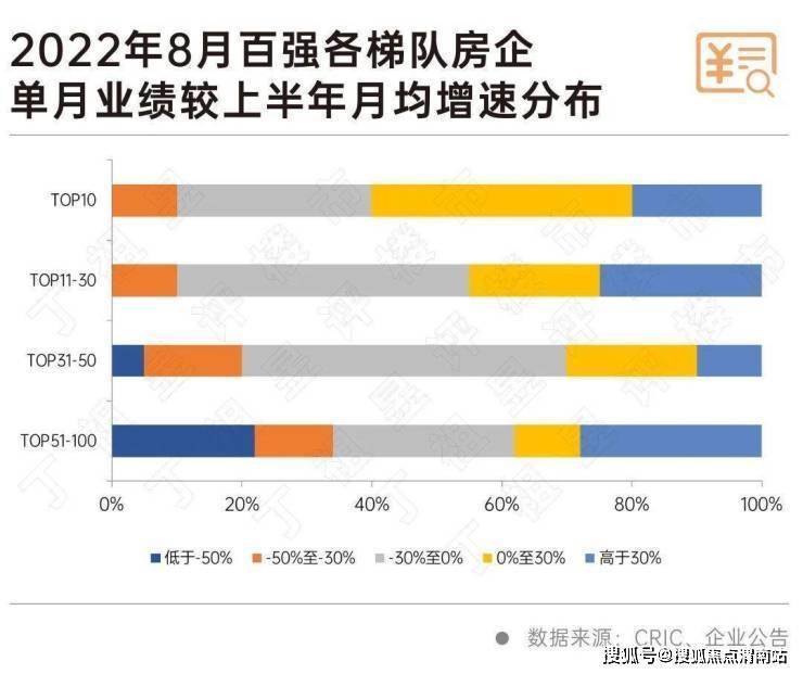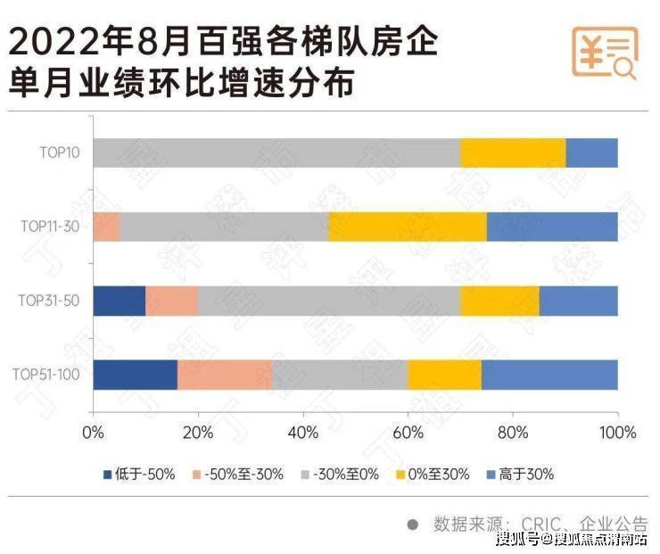 从房企业绩表现来看,8月百强房企单月业绩环比下降的企业达到了六成,其中12家房企业绩环比降幅在30%至50%之间,环比降幅超过50%的房企就有10家。