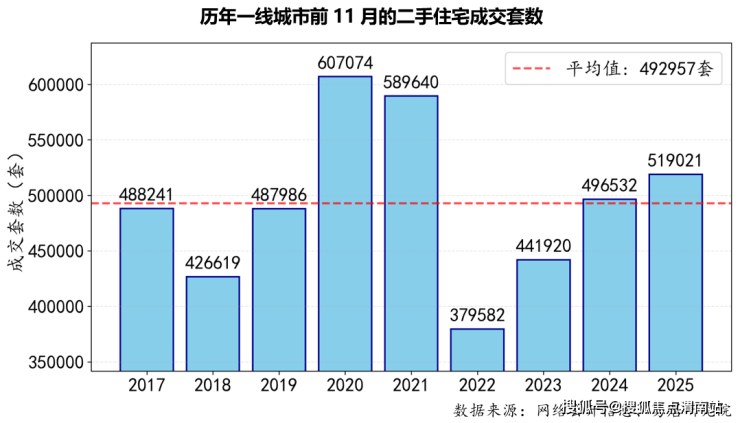根据报告,截至11月,四个一线城市全年二手住宅累计成交519021套,不仅超越2024年同期的496532套,同比增长约5%,更是近四年来首次突破51万套大关,达到近9年的第三高水平,仅次于2020和2021年。