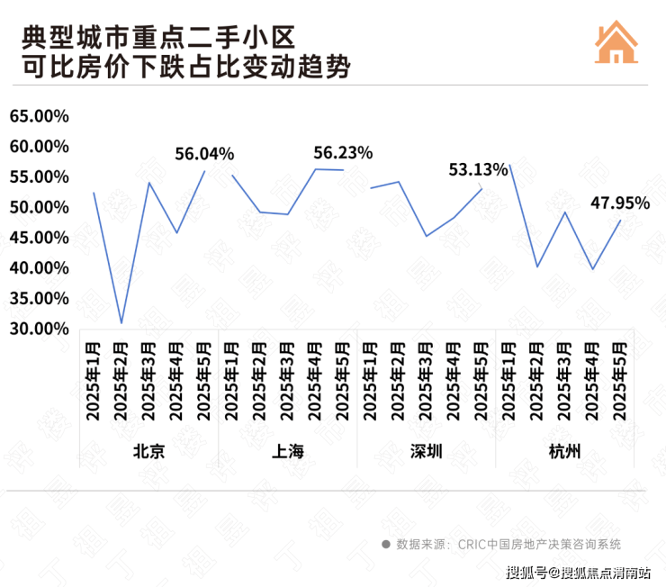 据CRIC监测数据,2025年5月30个重点城市二手房成交环比下降10%,同比微增4%,整体增长动能放缓。