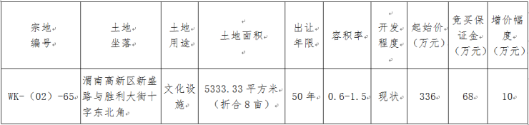 渭南高新区一宗文化设施用地挂牌出让,搜狐焦点渭南站收录,根据渭南市自然资源和规划局信息显示,渭南高新区新盛路与胜利大街十字东北角,折合8亩的文化设施用地挂牌出让,以下是详细信息。