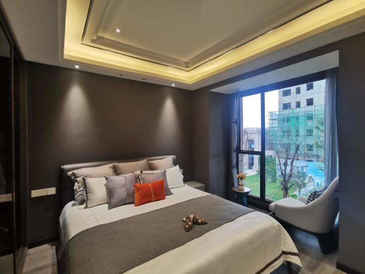 主卧套房式设计,在卧室飘窗设计上,采用步入式飘窗,让室内采光更通透的同时,增加房间内可利用面积,并且飘窗面积全赠送,较高赠送面积高约15.36㎡。