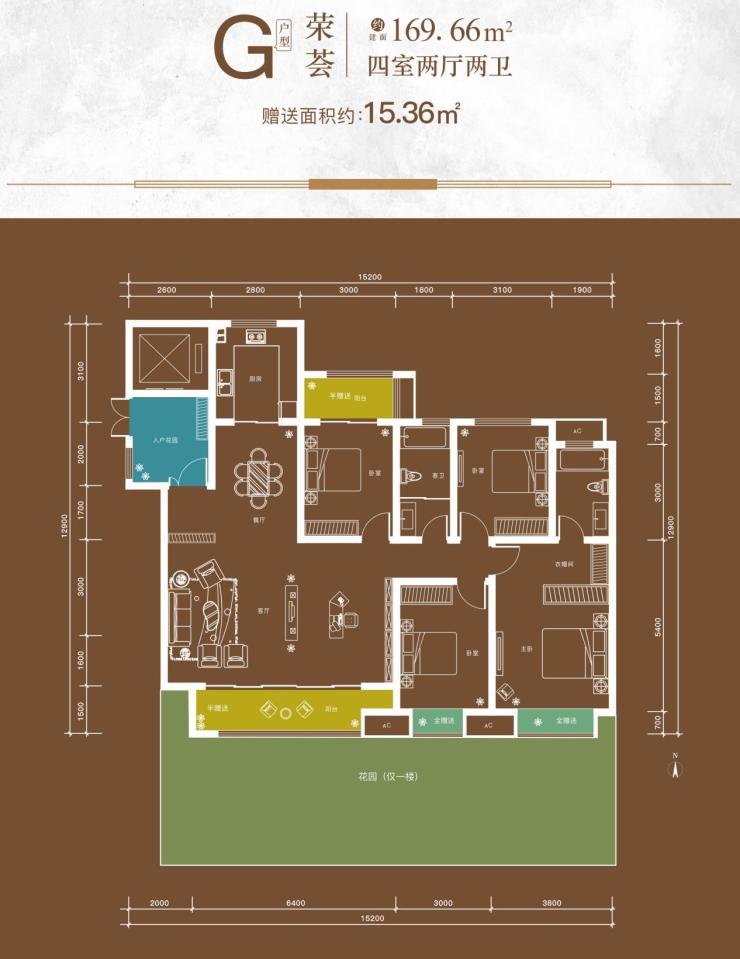 中创约169㎡四室更具备“大人物标配”的特质。120米的楼间距,让处在其中的业主享受优质的瞰景视野。更别说1梯1户、入户花园、7.5米横厅这样的豪宅标配,整个户型赠送面积高约15.36㎡。