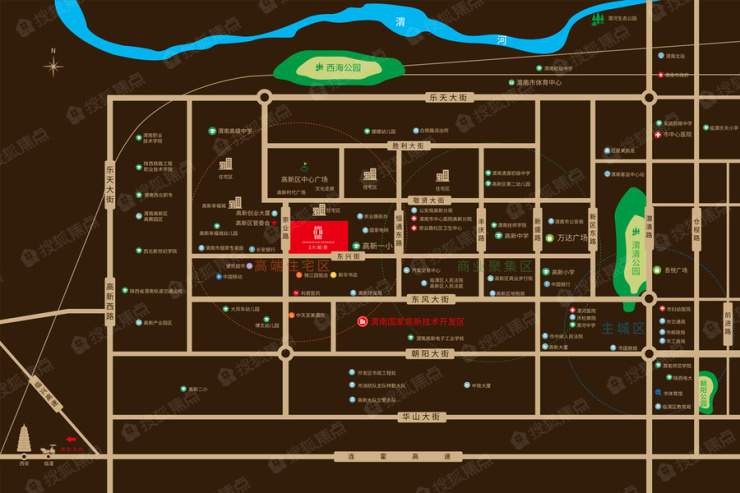 ④环境配套:中创·大都荟距高新中心广场约200米,周边西海公园、渭清公园环伺。